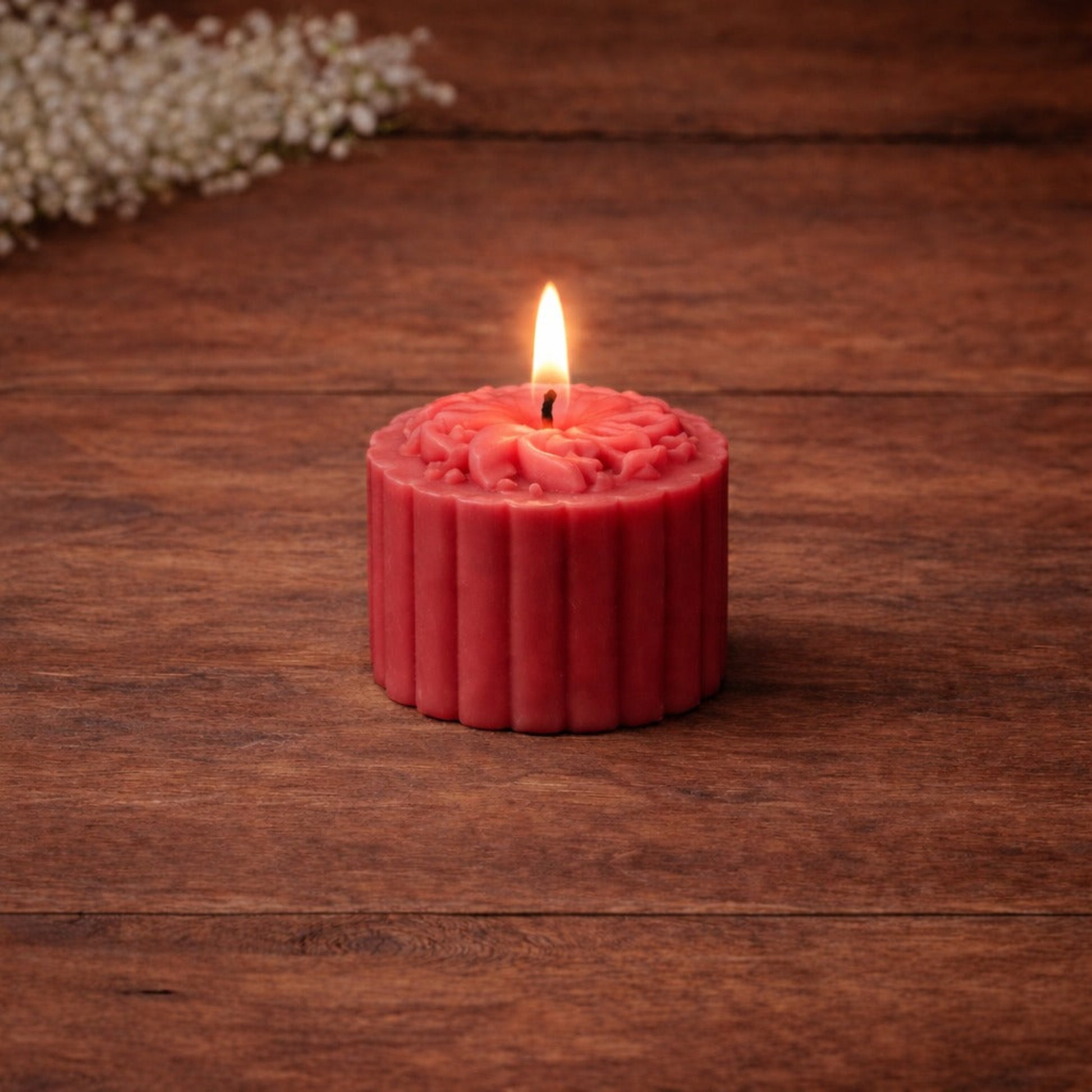 Elevate your decor with this elegant pillar candle, featuring a unique leaf-textured top and a smooth cylindrical finish. A perfect blend of minimal and nature-inspired design.
